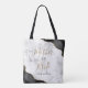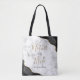 Diese elegante moderne Tasche für die Mutter der Braut zeigt ein schwarzes Achat-Wasserfarben-Design, das mit goldenem Glitter-Imitat in zwei Ecken besetzt ist. Die Worte "Mutter der Braut" erscheinen in goldfarbener und schwarzer Handschrift auf einem grauen und weißen Marmorhintergrund. Fügen Sie ihren Namen in schwarzer Copperplate-Schrift hinzu.