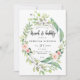 Eine schöne grüne und rosafarbene Blumen-Design Brautdusche Einladung mit Typografie "Brunch and Bubbly" Beschriftung. Bitte besuchen Sie meinen Shop, um die passenden Artikel wie Rücksendeadressen-Aufkleber, Aufkleber und Umschläge zu erwerben.
