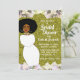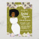 Diese elegante Brautdusche aus Gold und Weiß besticht durch eine Anordnung von blumigen Blume auf einem goldenen Hintergrund mit einer afroamerikanischen Frau in weißem Kleid. Diese Einladung vermittelt einen ersten Eindruck von Stil und Eleganz für Ihre große Veranstaltung.
