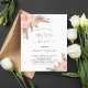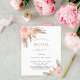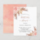 Für ein modernes bohisches Brautparty. Ein stilvoller weißer Hintergrund. Die Einrichtung ist mit Rose-Gold und rosa Blumen, Rose und Pampas-Gras dekoriert. Personalisieren und fügen Sie einen Namen und Party-Details hinzu.