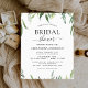 Das Budget Blumengrün Botanische Wasserfarbenfeder Brautdusche Einladungen auf grünem und weißem Hintergrund - beinhaltet eine schöne und elegante Schriftzeichen-Typografie mit modernen botanischen Blätter und Grün für die besondere Braut zu sein.