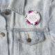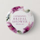 Ein kreativer Brautparty-Knopf mit einer künstlerisch-Aquarellfarben rosa Lilienblütenmalerei saß hinter einer weißen gerahmten Tafel und hielt Ihr Brautparty Details Set in elegantem Text. Entwickelt von Thisisnotme©