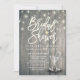Bridal Shower Invitation Card Vorlagen - Elegantes Schriftzeichen, Vintage Champagnerbrille und String Lights auf rustikalem Holzhintergrund. Alle Textstile, Farben, Größen können an Ihre Bedürfnisse angepasst werden.