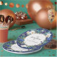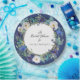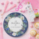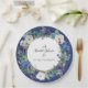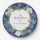 Teller aus Brautparty und Party (kann für Ihren besondere Anlass gewechselt werden). Die hellen und farbenfrohen blauen Blume mit Blattwerk und einem zarten vergoldeten Glitzer sind elegant und raffiniert. Copyright Audrey Jeanne Roberts.