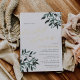 Rustikale, elegante Brautduscheinladung, reich an cremefarbenen Schriftzeichen in schicken Häusern und Kurika mit goldfarbenen Akzenten aus Kalligraphie-Folie, mit Farbsprühen aus Aquarellblättern an den Ecken in satten Grüntönen von Salbei bis Wald und Jäger. Bridal Dusche Einladungen kehren zu soliden dunklen Smaragdgrün.