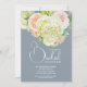 Brunch und Bräunungsdusche laden Sie ein, Ihre Details in schicken Schriftzeichen auf einem staubblauen Hintergrund (oder in jeder beliebigen Farbe) mit wunderschönen Aquarellfarben-Blume - weiße und grüne Hydrangeas, rosa und cremefarbene Rose, Gänse, kleine Stiele und Blätter. PASSENDE Artikel in unserem Geschäft.