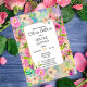 Eine Fülle von Blumenfarben für Ihr Brautparty im Frühling oder Sommer. Wasserfarben in Regenbogen von Farben und eine Fülle von Blume umrahmen ein zentrales, abgerundetes Rechteck. Hübsche Schriftart legen alle wichtigen Details fest, um die Braut zu duschen. Pinks, Pfirsich, lebendige Grüntöne und eine Touch Violett. Das Datum der Dusche ist in weichem Pfirsich hervorgehoben, aber die Farbe kann im Designwerkzeug angepasst werden.