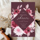 Feiern Sie eine romantische Herbsthochzeit mit dieser eleganten, blumengeschmückten Einladung mit einem geometrischen Rahmen aus goldfarbenem Diamant, Dahlien aus Aquarellbord, blütigen Pfannkuchen und rustikalem Herbstblättern. Ideal für Hochzeiten im Freien, im Bohengarten oder auf dem Land mit einer gemütlichen, Vintagen Touch.