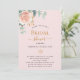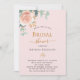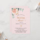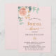 Ein mädchenhaft rosa Hintergrund. Dekoriert mit einer Rose Gold und rot rosa Blumen, Rose Blume und grüne Aquarell Eukalyptus Blätter, Sprigs, Grün und ein Imitat goldbraun. Personalisieren und fügen Sie den Namen der Braut zu sein und Party Details.