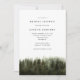 Rustikales Waldthema Braudusche Einladungskarte mit Aquarellbild des Pinienwaldes. Ideal für eine Herbstfeier.