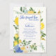 Laden Sie Liebhaber zu einem frischen und eleganten Feiern mit diesem Main Squeeze mediterrane Lemon Bridal Dusche Einladung! Das atemberaubende mediterran inspirierte Design mit lebhaften gelben Zitronen, blauen und gelben Blumen, üppiger Vegetation und klassischen blauen Akzenten verleiht dem Hotel den Charme der sonnigen Küstengärten. Ideal für ein Brautparty mit Zitrone oder mediterran inspiriertem Design, kombiniert es Eleganz mit einer Touch von Launen. Vollständig anpassbar, ist es der ideale Set für ein helles und fröhliches Event.