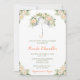 Schöne Braudusche mit weißem Schirm und Pfirsich und cremefarbenen Blumenarrangements. Ideal für ein Brautparty. Die Wörter können geändert werden, um Ihre eigenen Angaben oder Anforderungen Anzug