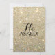 Doppelseitig Fragte er, sagte sie Ja Bridal Dusche Einladung mit Glitzer-Look Hintergrund. Anpassen mit Ihren eigenen Farben, Text, etc. Erhöhen Sie bei Bedarf die Textgröße, stellen Sie sicher, dass der untere Textabschnitt im Textsicheren Bereich bleibe wird. Sehen Sie andere Er Fragte, sagte sie Yes Artikel in der Er Fragte Sammlung.