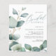 Moderne boho chic sage grün, staubblau und golden Aquarell eucalyptus sukculent Blätter elegante Drehbuch BUDGET erschwingliche Braut Dusche Einladung.