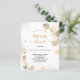 Weißer Hintergrund mit goldenem Eukalyptus und Imitaten goldener Glitzer Staub. Personalisieren und den Namen der Braut zu sein und Party Details. Schwarze und goldfarbene Buchstaben. Zurück: weißer Hintergrund mit goldenen Imitaten Glitzer Staub.