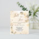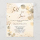 Für ein elegantes Brautparty im Herbst. Ein goldfarbener Hintergrund mit goldenem Eukalyptus und Imitaten goldener Glitzer Staub. Personalisieren und den Namen der Braut zu sein und Party Details. Schwarze und goldfarbene Buchstaben. Mit dem Text: Fall in Liebe. Zurück: goldfarbener Hintergrund