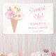 Dieses hübsche Brautparty-Banner im Eis-Stil ist mit Aquarellfloralen und einer Eistüte dekoriert. Der Text sagt "Scooped Up!" in pastellrosa Typografie. Einfach anpassbar. Original Wasserfarbe © Michele Davies.