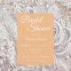 Einfache Stil, Brautduscheinladung mit einem trendigen, pfirsichfarbenen Hintergrund, dem Namen und dem Veranstaltungsort der zukünftigen Braut, dem Party, dem Kontakt usw., in weißer, stilisierter Schrift gedruckt. Personalisieren Sie Ihre Einladung, indem Sie Text durch eigene Brautparty-Informationen ersetzen. Wählen Sie Ihre Einladung Papier Stil und Quantität.