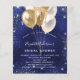 Eine moderne, stilvolle und glamouröse Brautdusche. Marineblau, mit Blumen und Imitaten verziert mit goldenen Glitzer Glitzern und goldenen Ballons. Die blaue Farbe ist ungleichmäßig. Personalisieren und fügen Sie einen Namen und Party-Details hinzu.