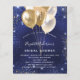 Bitte beachten Sie, dass diese Einladung auf Flyer Papier und sehr dünn ist. Umschläge sind nicht enthalten. Für dickere Einladungen (gleiche Gestaltung) besuchen Sie bitte unseren Shop. Eine moderne, stilvolle und glamouröse Brautdusche. Marineblau, mit Blumen und Imitaten verziert mit goldenen Glitzer Glitzern und goldenen Ballons. Die blaue Farbe ist ungleichmäßig. Personalisieren und fügen Sie einen Namen und Party-Details hinzu.