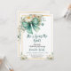 Eine stilvolle Brautparty-Karte mit eleganten Aquarellblumen, Grünpflanzen und einem kühnen grünen Bogen. Die sanften Pastelldetails und die moderne Gestaltung machen es zu einer schönen Wahl, um Liebe und Freundschaft zeitlos und feminin zu feiern.