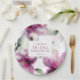 Eine kreative Brautparty-Papiertafel mit einer künstlerisch-violetten Aquarelllienblütenmalerei saß hinter einer weißen gerahmten Tafel, die Ihr Brautparty Details Set in elegantem Text hält. Entwickelt von Thisisnotme©