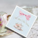 Ein elegantes Band, das die Reaktionszeiten reflektiert, ist Teil dieses Tee-Party und Rose Brautparty-Design. Weich blau mit rosa Rosen in einem pastellfarbenen Farbton. Vintages und elegantes Hochzeitsduschdesign. Ändern Sie einfach die Informationen für Ihr eigenes, individuelles Design. Elegantes formales Design.