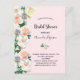 Eine trendige, farbenfrohe Blumendusche in Rosa, Rose und Weiß. Ein klassischer rosa Hintergrund auf der Vorderseite. Weiße Flora, Rose Gold, Rosa und Grünpflanzen. Die Einrichtung ist mit großen, üppigen Blume in Aquarelltönen gestaltet. Personalisieren und fügen Sie Ihre Namen und Hochzeitsdetails. Schwarzer Text. Zurück: Schwarz rosa Hintergrund, Postkartendesign. Tipp: Wenn Sie es nicht so gewollt haben, dass es wie eine Postkarte aussieht, klicken Sie auf Anpassen, gehen Sie auf die Rückseite und entfernen Sie den Trenner und posten Sie die Briefmarke.