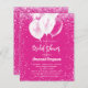 Ein warmes rosa Hintergrund. Dekoriert mit rosa Konfetti und weißen Ballons. Weißer Text. Personalisieren und fügen Sie einen Namen und Party-Details hinzu. 1 Blatt = 1 Einladung mit Druckkante bis Kante.