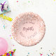 Eine Rose goldener Hintergrund mit einer eleganten Rose Gold Konfetti. Der Text: Der Name ist in dunklem Rose Gold geschrieben, mit einem großen, modernen Schriftsatz. Personalisieren und fügen Sie ein Datum, einen Namen.