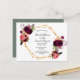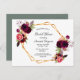 vorne: Ein eleganter weißer Hintergrund mit einem geometrisch geformten Rahmen in goldenem Imitat. Die Einrichtung ist mit dunkelbordeauxfarbenen und rosafarbenen Blume, Rose und Boho-Federn gestaltet. Vorlagen für den Namen der Braut und Party Details. Der Name wird mit einem handgeschriebenen Stilskript geschrieben, mit schwarzen, farbigen Buchstaben. Zurück: ein trendiger, schlängelgrüner Hintergrund. Tipp: Wenn Sie es nicht so gewollt haben, dass es wie eine Postkarte aussieht, klicken Sie auf Anpassen, gehen Sie auf die Rückseite und entfernen Sie den Trenner und posten Sie die Briefmarke.