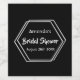 Ein elegantes und schlichtes Weine- oder Meisterlabel für ein Brautparty. Zwei schmale sechseckige geometrische Rahmen in Weiß. Schwarze Hintergrundfarbe. Vorlagen für den Namen der Braut, weiße Buchstaben.