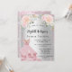 Eine moderne, stilvolle und glamouröse Einladung für ein Brautparty. Ein silbernes Imitat mit Glitzer aus rosa Imitaten, Glitzern, Kleid und Rosa Blumen. Der Name ist mit einem modernen handgeschriebenen Stilskript geschrieben. Personalisieren Sie Ihre Party-Daten und fügen Sie sie hinzu.