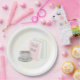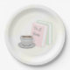 Tee-und-Bücher-Brautparty. Mit rosa und grünen Büchern und einer Tasse Tee