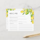 Diese Zitronenschale mit Aquarellfarben ist ideal für Frühlings- oder Sommergarten-Brautparty-Duschen und Bridal-Brunch-Party. Es zeichnet sich durch lebendige, hellgelbe Aquarelllemonen, grüne Blätter und weiße und rosa Zitronenblüten aus. Ideal für die Braut, die ihren Hauptpresse gefunden hat! Frag deinen Gästen, ihre Kochkarte auszufüllen und sie in dein Brautparty zu bringen.