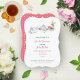 Einladung zur Watercolor Tea Time Bridal Dusche! Feine Blume schmücken ein zauberhaftes Tee-Set mit einem Polka-Dot-Hintergrund auf der Rückseite der Einladung und schaffen ein elegantes Design. Mit nur einem Klick auf den blauen Knopf, personalisieren Sie ihn mühelos mit all Ihren Veranstaltungsdetails. Genießen Sie einen stressfreien und einfachen Weg, um die Gäste zu einer unvergesslichen Feier einzuladen.