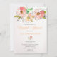 Hier ist eine Blumendusche, die modern, luftig und fröhlich ist. Es zeichnet sich durch wunderschöne Aquarellfarben impressionistische Blume und Blattwerk als oberste Grenze an der Vorderseite aus. Die Farben in diesem freestyle Line Design sind Korallenrosa, Mandarine Pfirsich, warmes Gelb und cool blaues Grün. Unterhalb des künstlerischen Bildes befindet sich Ihr eigener Text in Weich-Grau-Pastellfarben-Mandarine. Ein zweites, passendes Miniatur-Blumenbild dient als Textteiler. Bild und Text werden auf einem weißen Hintergrund platziert. Die Rückseite der Einladung ist ein subtiler Farbverlauf Wasserfarbe, die die Mandarine pfirsichfarben in den Blume.