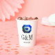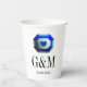 Blue Green smarald Edelstein maßgeschneiderte Hochzeit Papier Cups für die Hochzeit. Glamouröses Juwel mit Herzensymbol. Personalisieren Sie mit den Namen Initialen von Braut und Bräutigam plus Datum der Ehe. Elegantes Typografie-Design für Ehepaare, die heiraten. Ideal zum romantischen Abendessen Party, GRILLEN, Empfang, Jubiläum und vieles mehr. Luxuriöses Party für extravagante Veranstaltungen.