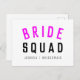 Niedliche, einfache, stilvolle "Bride Squad" zitiert Postkarte mit moderner, minimalistischer Typografie in schwarz und heiß neonrot in einem coolen trendigen Stil. Der Slogan, Name und Rolle kann leicht personalisiert werden mit den Namen Ihres Brautparty, zum Beispiel Braut, Brautmädchen, Blume Mädchen, Mutter der Braut, Glam Squad und vieles mehr! Das perfekte passende, koordinierende Zubehör für Teambrille für ein Brautparty, einen Junggeselinnen-Abschied oder einen Morgen der Hochzeit mit einer super niedlichen oder eine persönliche Touch!