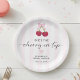 Süßes "Sie ist die Kirsche auf dem Gipfel"-Thema-Brautschauer mit süßem rosa Schleifen-Koquette-Design auf maßgeschneiderten Papptellern.