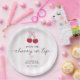 Süßes Brautparty-Thema "Sie ist die Kirsche auf dem Sahnehäubchen" mit süßem rosa Bogen-Coquette-Design auf maßgeschneiderten Papptellern.