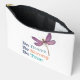Les caractéristiques du sac de maquillage moderne et inspirant Be Brave, Be Strong, Be True. Dragonfly violet style d'art Word