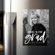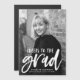 Aimant de graduation moderne et élégant avec la photo verticale du diplômé avec "Cheers to the grad" dans un script de brosse blanc et écrit à la main. Personnalisez l'avant du faire-part de graduation magnétique en ajoutant le nom du diplômé, le nom de l'école et l'année de graduation.