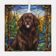 Große Glasverzierung eines Braunen Neufundland Hundes in einem Buntglasfenster-Modus.