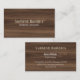Diese minimalistische Visitenkarte bietet einen schokoladenfarbenen Holzkornuntergrund und zwei Schriftart. Passen Sie Ihre Daten an.