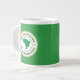 A silhouette of the country of Brazil is at the centre of this design. The text that features above and below the silhouette is in English and Portuguese. The colours of the design are taken from the colours of the Brazilian flag.
