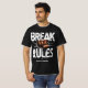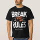 Machen Sie mit diesem Break Rules T - Shirt-Design eine kühne Aussage, die Rebellion, Originalität und furchtlose Kreativität verkörpert. Set vor einem schwarzen Hintergrund, die mächtige Phrase BREAK RULES hebt sich in großen gebrochenen weißen Buchstaben hervor. Das "R" in RULES wird durch eine realistische braune menschliche Hand ersetzt, die den Text durchschlägt und Stärke, Widerstand und Barrieren symbolisiert. Unter dem Hauptdesign fügt die Phrase NOTHING IS ORIGINAL eine zum Nachdenken anregende Drehung hinzu, die den Innovationsgeist und eine herausfordernde Konventionen einfängt. Mit seinem minimalistischen und dennoch wirkungsvollen Stil ist dieser Tee perfekt für Künstler, Rebellen, Schöpfer und freie Denker, die nach ihren eigenen Regeln leben.