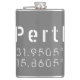 Längen- und Breitengradkarte Perth Australia Koordinaten im modernen urbanen Schriftart auf grauem Hintergrund