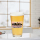 Pint glass besticht durch die Skyline-Silhouette der Stadt Seattle Washington mit Aquarellsplantaten und Koordinaten der Längen- und Breitengradkarte