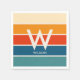 Trendige, persönliche Party-Servietten mit breiten Streifen in Retrofarben. Grosses zentriertes Monogramm und assoziierter Name. Saubere, einfache minimalistische Typografie. Vollständig personalisierbar.